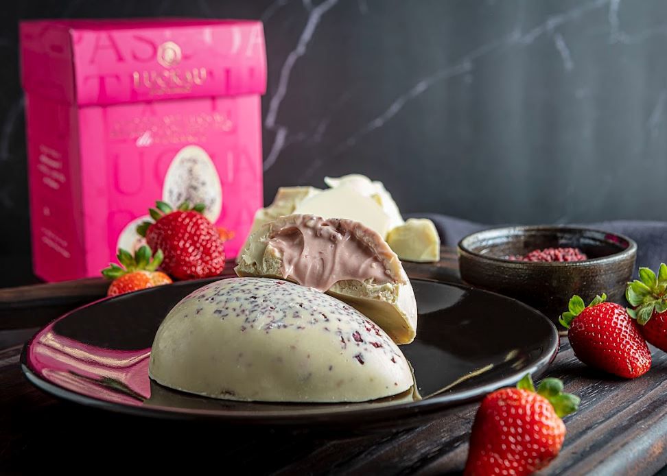 Um recheio completamente novo, produzido através de um processo complexo e rigoroso de liofilização que resulta em um morango que é delicioso e que preserva todos os nutrientes da fruta. A leveza da união entre o morango e o chocolate branco feito com receita original Luckau, capaz de se transformar em algo irresistível. Toda a qualidade e sabor dos chocolates Luckau para que sua Páscoa seja doce e inesquecível, sem deixar de lado os benefícios de ter Whey Protein, Colágeno e ser Zero Açúcar. Venha se deliciar com a Páscoa Luckau! São duas bandas de ovos totalizando 300g que irão te garantir uma experiência inesquecível!